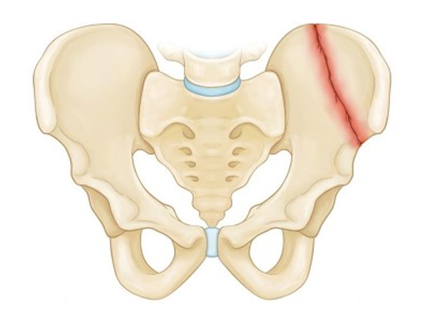 Pelvic fracture is a disruption of the bony structure of the pelvis, including the hip bone, sacrum and coccyx. The most common cause in the elderly is a fall, but the most significant fractures involve high-energy forces such as a motor vehicle crashes, cycling accidents, or a fall from significant height. Another cause can be the result of pregnancy and/or childbirth causing mild to complete disruption/instability of the pelvic joints symphysis pubis, sacroiliac joint. Diagnosis is made on the basis of history, clinical features and special investigations usually including X-ray and CT. Because the pelvis cradles so many internal organs, pelvic fractures may produce significant internal bleeding which is invisible to the eye. Emergency treatment consists of advanced trauma life support management. After stabilisation, the pelvis may be surgically reconstructed.